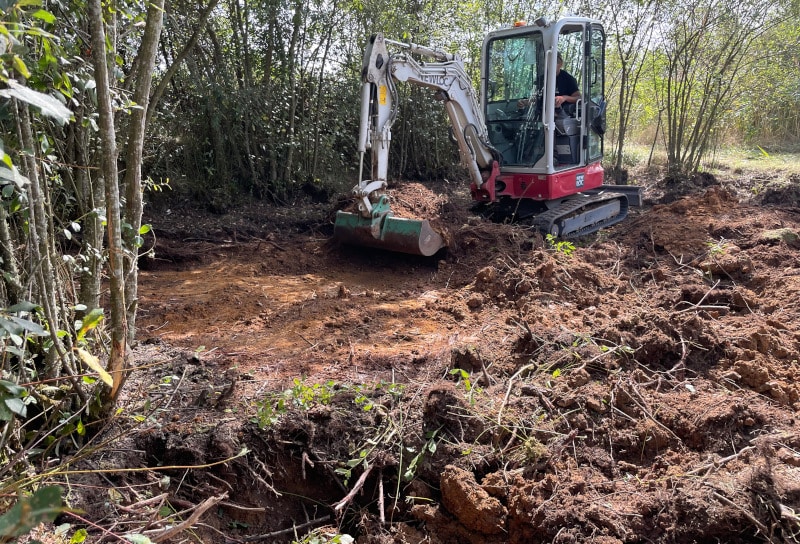 La restauration, en soi, ne prend pas beaucoup de temps : la mare a été creusée en trois jours. Mais le plus complexe, c’est de choisir le bon moment. Il ne faut pas trop d’eau dans le sol, sinon les engins ne peuvent pas passer. Et en même temps, il faut éviter de perturber la faune présente et qui utilise la mare.